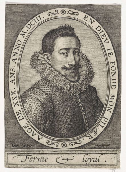 Curator: This print, "Portret van Christoph Pelargus" from the 17th century, offers more than just a likeness; it’s a document of material culture. Editor: Yes, it's fascinating! The fine lines of the engraving create such detail. How do you interpret this portrait within the context of 17th-century printmaking? Curator: Look at the materials used - the paper, the ink, the metal plate. Consider the labour involved in creating the print. This wasn't simply about depicting a face; it was about reproducing an image for wider circulation, turning Pelargus into a commodity, a brand almost. What do you make of the textual elements, and where are they placed relative to the portrait? Editor: The text gives his titles –Pastor and Superintendent. Placing the text below emphasizes his status and credentials; but I find it interesting how the book in his hand almost mirrors the plaque beneath the text: I am curious why he's holding it and what that contributes. Curator: Precisely. The book’s materiality speaks volumes. It's not just a prop; it's a symbol of knowledge, power, and religious authority. Its mass production through printing allowed ideas to spread rapidly, fueling social and religious change. Consider the consumption of these prints, who owned them, how they were displayed and how such objects bolstered the status of people like Pelargus. The act of portraying Pelargus holding the printed book, reproduced via a print like this one for distribution speaks volumes of production and labor's power to enhance and amplify reputation in early modern Europe. Editor: So, it’s not just about the image, but about the means of its production and dissemination, highlighting the broader social and cultural landscape? I hadn't thought of it that way. Thanks, this has definitely broadened my perspective. Curator: Exactly! We've considered how the very act of creating and consuming the image reinforced existing power structures of the time and how labor helped establish early European society.