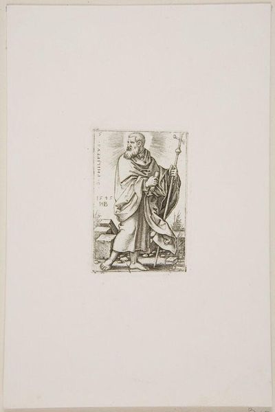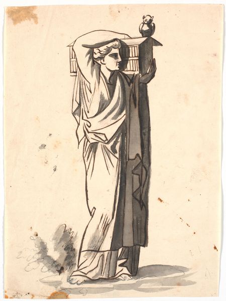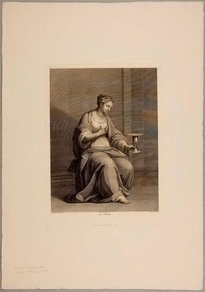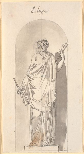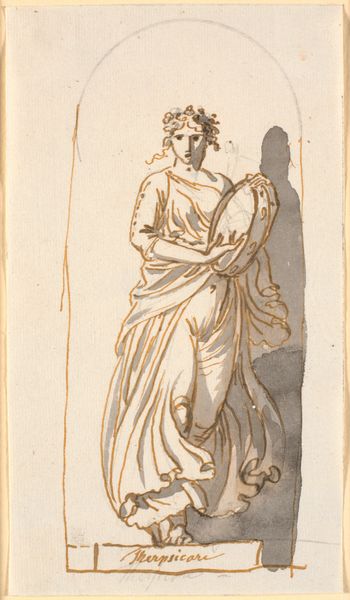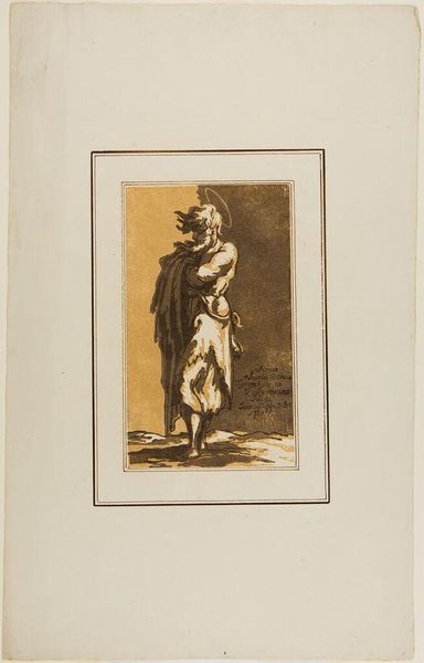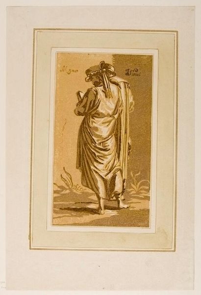 Editor: This is John Skippe's "Back View of a Man Reading," from the Harvard Art Museums. It's a small print and the figure is dressed in what looks like classical robes. What strikes me is how deliberately his face is turned away. What can you tell me about that? Curator: It's interesting to consider how this image participates in the 18th-century’s fascination with antiquity and the Grand Tour. Skippe's choice to depict the figure's back invites us to ponder the act of reading itself, and who had access to such leisure and learning. How does this relate to notions of status and privilege in that era? Editor: So, it's about more than just reading; it's about the *ability* to read, and what that signified? Curator: Precisely. Consider how the image's circulation through prints might democratize access to such imagery, even if it couldn't democratize access to education itself. Editor: That gives me a lot to think about regarding the power dynamics embedded in art! Curator: Indeed. Art often reflects and reinforces social structures, even when it seems simply representational.