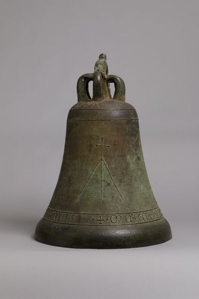 Harry Grossen made this painting of a bell, we don’t know exactly when, using watercolor and graphite on paper. I like the directness of it. It's a simple rendering, but it has a real presence. The bell itself is a study in texture and light. The artist plays with the sheen of the metal, that gradient of almost pearly light through the grey, indicating the bell’s rounded form. The fleur-de-lis and those little bands circling the bell’s form are so meticulously rendered. The whole composition is bathed in this muted, almost ghostly palette. It’s as if Grossen is trying to capture not just the bell's physical form, but also its sound. It reminds me of the work of Charles Sheeler, who also painted industrial objects and architectural forms with precision and clarity. It’s an interesting reflection on how we see and experience the objects that surround us. What do bells mean to you?