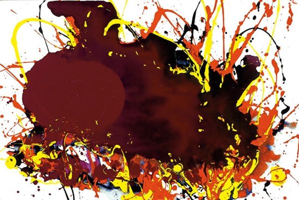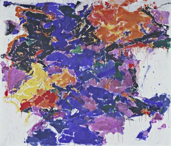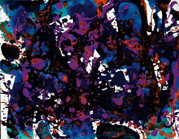 Sam Francis made this untitled painting with paint on canvas. You know, looking at this painting I think about accidents, and how we deal with them. How you can build something beautiful with the unexpected. It's all about the gesture here, right? That big splat of purply-blue in the center, it's like a contained explosion. The paint is thin, watery almost, and you can see how it pooled and dripped. I can almost feel the quick flicks of the wrist that made those trails of burgundy. The white space around it isn't just empty, it's part of the action. It makes me think of Helen Frankenthaler and her soak-stain technique, or maybe even a bit of Pollock's drip paintings, but Francis has his own thing going on. It's like he's letting the paint do its thing, guiding it maybe, but not controlling it too much. He's having a conversation with the paint, and we get to eavesdrop.