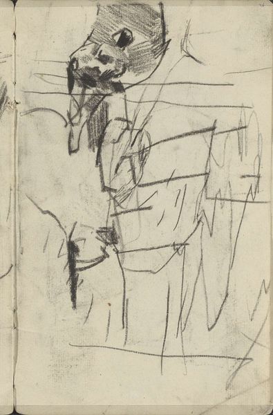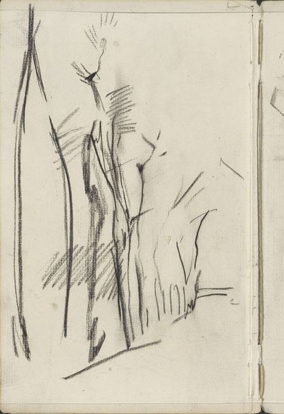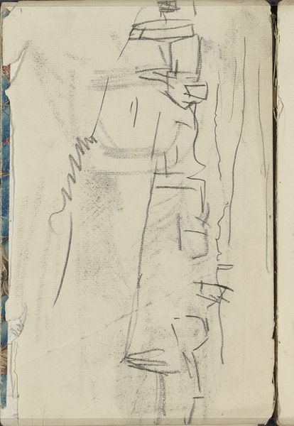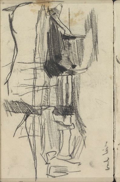 This charcoal sketch by George Hendrik Breitner shows a figure juxtaposed against buildings, but it's the use of light and shadow that truly speaks to our collective unconscious. The sharp contrast between the dark, heavily shaded areas and the stark white space evokes a sense of drama. The symbol of contrasting light and dark is as old as time itself, recurring in countless myths and legends across cultures. Think of the yin and yang, where opposing forces are interconnected and interdependent. This concept permeates human understanding of the world. Here, the way Breitner uses light and shadow pulls at the viewer's subconscious, stirring feelings of mystery and the sublime. Though the shapes are simple, their placement and tone create a composition that transcends mere representation. The darkness looms, creating a timeless expression of the human condition in the face of looming architecture.
