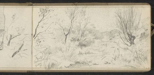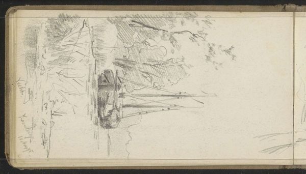Willem Cornelis Rip sketched "Landschap met twee palen" in graphite. The landscape is rendered through delicate, almost ephemeral lines. The composition, while seemingly simple, presents a subtle interplay between structure and fluidity, with the bare branches of a tree stretching horizontally across the upper part of the scene. The two poles, slightly to the left, add a vertical anchor, creating a visual counterpoint to the organic sprawl of the foliage. The lines used throughout the sketch vary in weight and density which suggests depth and texture. Rip's technique reflects an interest in capturing the essence of the landscape through minimal means. His work invites us to consider the semiotic function of each element within the landscape. It is an exercise in stripping down the visual language to its barest essentials. The linear structure serves not just as a depiction but as an exploration of form itself.