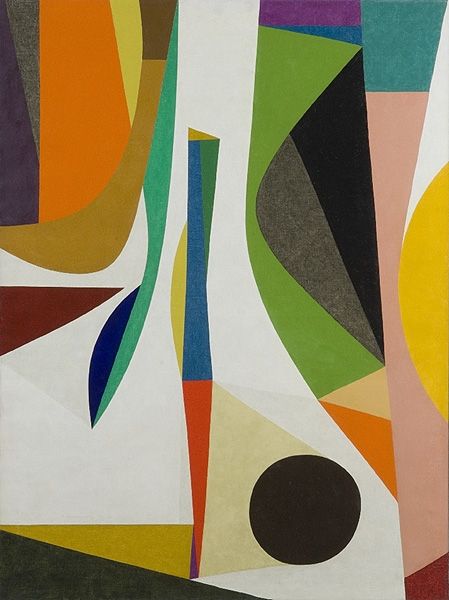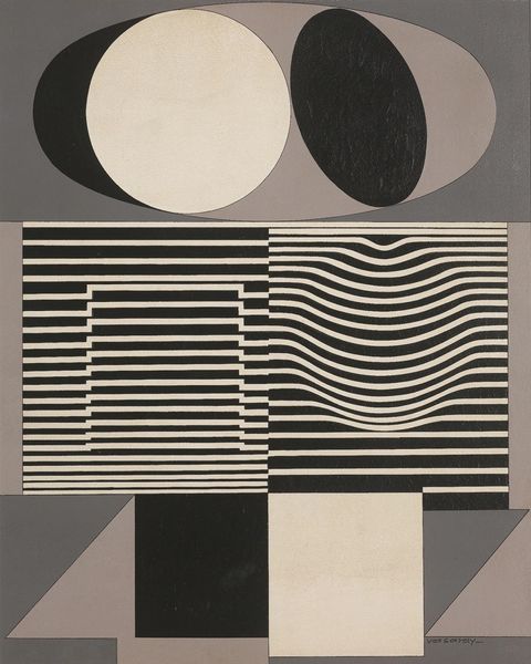 Editor: This is "4 temas circulares," or "4 circular themes" by Tomas Maldonado, created in 1953. It’s a painting, with lots of clean geometric shapes and a very mid-century modern feel. The circles and squares are arranged in a way that's both playful and rigid. How would you interpret this work? Curator: Considering Maldonado’s interest in industrial design and Concrete Art, I see this work as an exploration of the tensions between artistic creation and industrial production. How might the materials – the specific paints chosen, the canvas itself – reflect the socio-economic context of post-war Argentina? Editor: So, beyond the shapes, you're suggesting we consider the actual…stuff it's made of? The paint and canvas become meaningful? Curator: Absolutely. Maldonado was interested in dismantling the hierarchy between fine art and industrial design. By examining the materiality, we can question traditional notions of artistic skill and value. Are these colors readily available, reflecting the growth of a chemical industry? Does the canvas bear the mark of factory production? Editor: That's fascinating! I hadn’t considered how even abstract art could be rooted in the materials and processes of its time. What would analyzing those materials tell us about his social message? Curator: It invites questions about labor. Who produced these materials? What were their working conditions? Maldonado’s geometric abstraction, on one level, seems very separate from these material concerns, but it also challenges the individualistic idea of "the artist" creating in isolation. It compels us to consider who really creates. Editor: That makes so much sense! I'm looking at it in a totally different way now – not just about shapes, but about the systems and work that allowed it to exist. Curator: Exactly. And hopefully, that lens will enrich how we engage with other artworks, too. Editor: Definitely, thanks so much for this perspective!