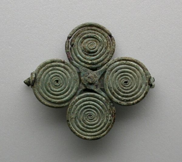 Editor: Here we have a reproduction of a gold Mycenaean ornament, probably made by Emile Gilliéron or his son. It’s quite small, just over an inch across, and the octopus design is really striking. What can you tell me about this piece? Curator: As a reproduction, its value lies less in its aesthetic innovation and more in its role as a commodity. Who was commissioning these reproductions, and for what purpose? What does its materiality – likely not actually gold – tell us about value and authenticity in the art market of its time? Editor: That's fascinating. So you're saying the reproduction itself becomes an object of study, revealing information about the social and economic factors at play? Curator: Precisely. The ornament’s existence as a copy prompts us to consider the labor involved in its making, its intended market, and the cultural capital associated with owning a piece, even a reproduction, of Mycenaean art. Editor: I never considered it that way before! Curator: Thinking about these pieces as commodities that reflect historical and cultural dynamics sheds light on their impact.