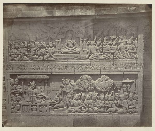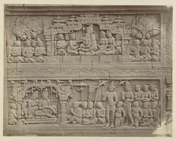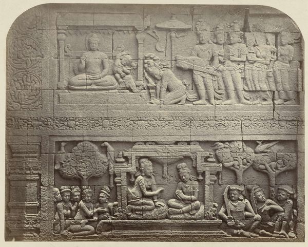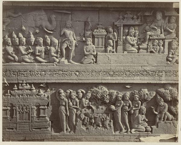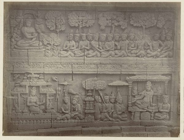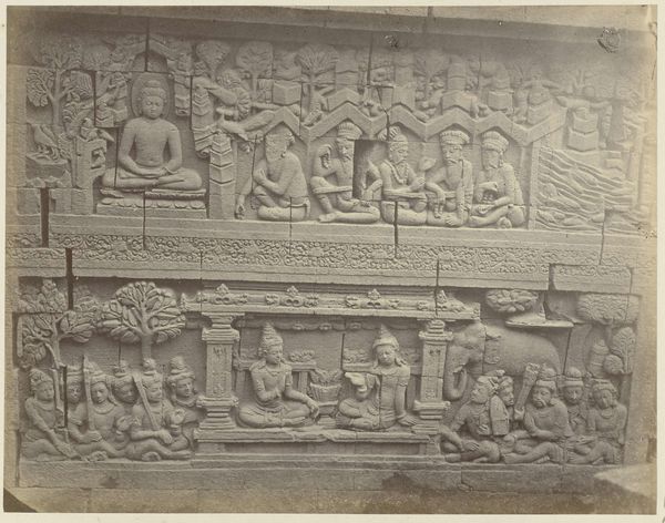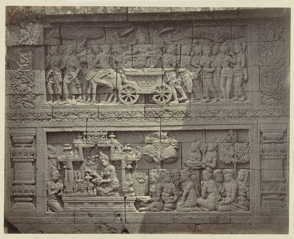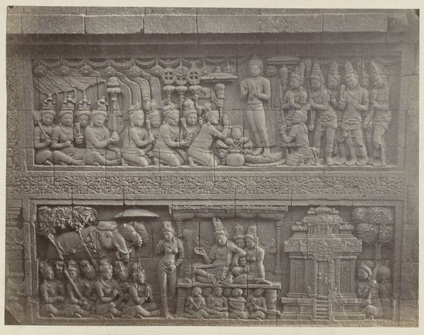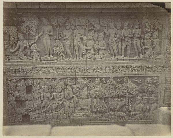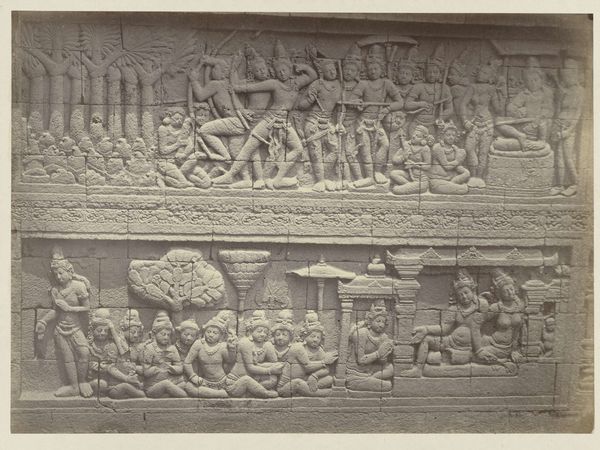 Isidore Kinsbergen made this bas-relief using stone carving techniques. The stone itself, likely a locally sourced variety, dictates the level of detail and texture we see. Its inherent qualities – density, grain, and color – all play a role in the final appearance. The process would have begun with rough shaping using tools like chisels and hammers, followed by finer work to define the figures and details. Looking closely, we can see the hand of the sculptor in the way the stone has been worked. Each mark tells a story of the labor involved, from the initial quarrying of the stone to the painstaking carving of the narrative. Kinsbergen engaged with an ancient tradition, requiring both physical strength and artistic skill. This wasn't just about aesthetics, but about capturing the very essence of the stone. Ultimately, this bas-relief reminds us that materials, making, and context are essential to understanding an artwork's full meaning. By appreciating the labor and skill involved in its creation, we can challenge traditional distinctions between art and craft.