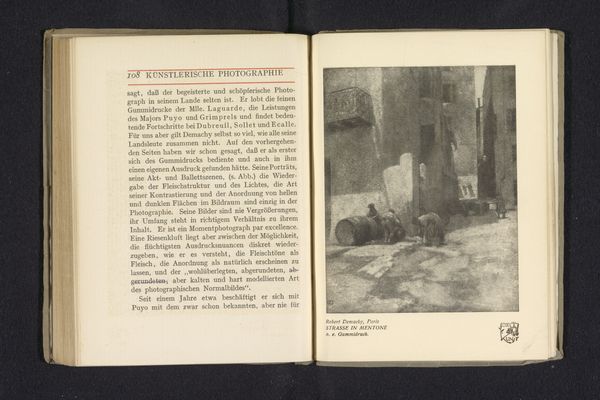 This photograph of a Venice dockside, by an anonymous photographer, shows a photo of a scene reproduced in a book. It's a study in contrasts, light and dark, absence and presence. What strikes me is the texture, the grainy quality of the image within the book. The photographer focuses on the monk-like figure in the foreground. The whole image has an almost palpable sense of depth, and yet it's flattened by the way the image is printed in the book and presented to us. Look at the upper section of the image within the photograph. It's a beautiful passage, where the buildings in the background are turned into a series of shimmering grey tones. You can almost feel the heat rising off the buildings. This photograph reminds me of the work of Gerhard Richter, who also explored the relationship between photography and painting, often blurring the lines between the two. Like Richter, this photographer seems to be interested in the way that images can be both representational and abstract, concrete and ethereal.