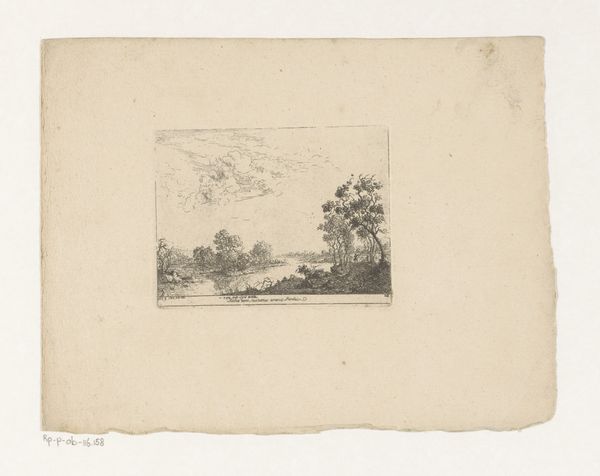 Editor: So, here we have Christian Ludwig von Hagedorn’s "Landschap met boerderijen aan het water," created in 1743 with ink on paper. It’s a detailed little landscape. What's striking is how quiet and pastoral it feels despite being so meticulously rendered. What catches your eye in this piece? Curator: As a historian, what stands out to me is the deliberate construction of an idyllic scene, one divorced from the realities of 18th-century rural life. Think about the patrons who would have enjoyed this. Does it seem likely they had direct connection to the toils of countryside farming? Editor: Not really. It’s like a curated view of peasant life. A sanitized version. Curator: Precisely. This reflects a particular social gaze. Landscapes like these weren't just pretty pictures; they played a role in shaping perceptions of the countryside, even justifying certain social hierarchies. Who controlled land, who worked it – that's subtly embedded here. Does this change the quiet mood you first observed? Editor: It does, a bit. It makes me think about who is absent in the scene. There's labour involved but we don't really see it. Curator: Exactly! Now consider where this drawing might have been displayed - in a wealthy collector's cabinet, perhaps? Its reception is shaped by that private, elite space. Editor: So the act of observing this drawing today in a museum is loaded with socio-political context! I didn't quite register that before. Curator: And that realization is exactly the sort of engagement such landscapes demand!