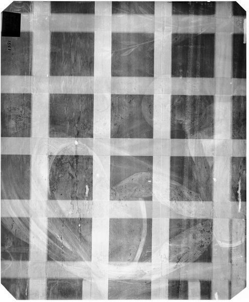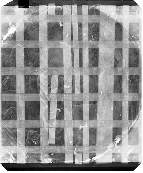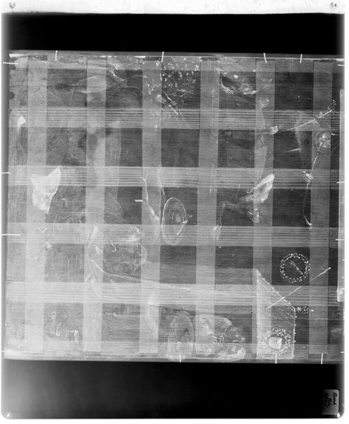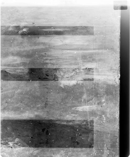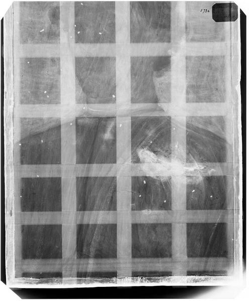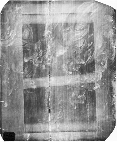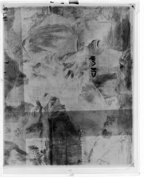 Curator: Here we have an X-radiograph of "Jester," attributed to Corneille de Lyon, held in the collection of the Harvard Art Museums. Editor: Woah, it’s like seeing a ghost of a painting! Very eerie, almost like a forgotten memory. It makes you wonder what secrets lie beneath the surface. Curator: Indeed! X-radiography allows us to peek behind the visible layers, revealing the artist's process and any alterations made during the painting's creation. The "Jester" likely held a specific cultural position, perhaps providing social commentary through humor. Editor: I get that. It’s like the painting is whispering stories to us from beyond, distorted and obscured, yet still present. A fascinating peek behind the curtain. Curator: Precisely, it's a glimpse into the history, a unique perspective on artistic intention. Editor: It gives a completely fresh and almost haunting take on art analysis. It’s like archaeology, but for paintings.