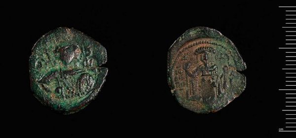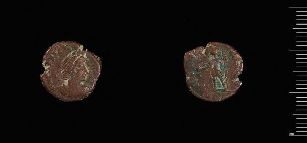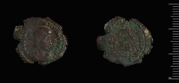 Curator: We're looking at a "Half-tetarteron of Andronicos I," crafted at an uncertain Greek mint. Editor: It looks like something dredged from the sea, ancient and worn. Curator: Indeed. As a material object, this coin offers a glimpse into the economic and political landscape of the Byzantine Empire under Andronikos I. Coinage was instrumental in projecting imperial power. Editor: Look at the texture; the relief is quite subtle. Notice the interplay of circular and polygonal shapes, defining the coin's form and image. I wonder how the imagery signified legitimacy? Curator: Well, the imagery often depicted the emperor and religious symbols, communicating the emperor's authority and divine mandate to a broad audience. It acted as a propaganda tool. Editor: Fascinating, to think such a small object could bear such heavy symbolic weight. Its design is a product of that period. Curator: Absolutely. And the coin's existence now provides material evidence about the time period and its historical legacy.