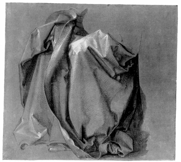 Curator: We are looking at an intricate charcoal drawing attributed to Albrecht Dürer, titled "Father's robe God." Editor: Well, I immediately feel enveloped. It’s like the folds of the robe want to swallow you whole, a protective, almost daunting presence rendered in stark black and white. Curator: Indeed. Dürer masterfully captures the texture of the fabric through incredibly fine lines and gradations of tone. The rendering possesses almost photographic realism and the folds seem to almost cascade with their own innate geometric patterns. Editor: Absolutely. I wonder, why just a robe? Is it a fragment, a study, or a symbol? The austerity is intriguing, suggesting a contemplative mood. Is this about humility, or about absence? Curator: Many believe Dürer intended it as a fragment in preparation for a larger work. Robes like these signify status but within the Northern Renaissance’s obsession with detail and realism, a new purpose begins to unfold. Editor: Status undone, perhaps? The fabric itself becomes the subject. There is a sense of transience in the folds that are ephemeral, captured for just a blink of time. Almost a stand-in for all earthly material, transient glory. It makes me wonder about the socio-political landscape Dürer worked within and what he meant to critique or highlight. Curator: That is a wonderful observation. Dürer lived during a period of intense religious and social upheaval. His artistic focus frequently intertwined with both spiritual reflection and observations about earthly status. How it connects to his era is still much debated among art historians today. Editor: It remains, regardless of its ultimate purpose, a compelling study in light, shadow, and texture and its incompleteness even heightens a profound resonance in how fabric mediates ourselves. A timeless portrayal, wouldn’t you say? Curator: I concur. Whether a fragment or a complete statement, this piece embodies Dürer's meticulous artistry and the evolving cultural landscape of the Renaissance.