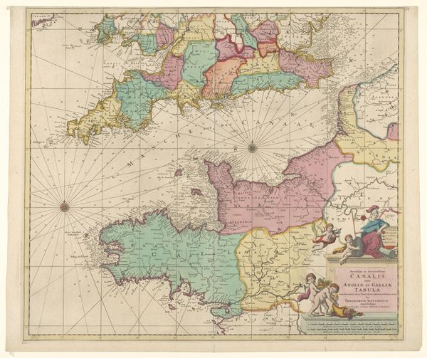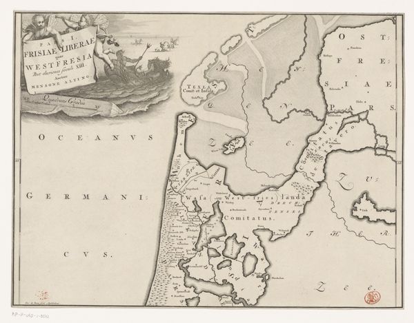 Curator: This print is a map entitled "Kaart van de Krim tijdens de Russisch-Turkse Oorlog (1735-1739)," dating from after 1737, created by an anonymous artist. Editor: The delicate watercolour illustration gives it such a storybook feel. Yet it documents such violent realities, those borders drawn with such deliberation masking enormous upheaval for everyday people. Curator: Indeed. These visual representations of land, particularly those related to war, played a crucial role in shaping public perception and justifying political actions. Notice how place names become instruments of power. Editor: Exactly. It is interesting how the cartographer’s gaze seems to flatten the complexities of the Crimean landscape and reduces its diverse communities into objects for strategic and military consideration during that 18th-century Russo-Turkish War. Curator: Well, maps were inherently tools of statecraft at this time, of course. Look closely at the Baroque stylistic elements in the embellishments—a reminder that aesthetics were often deliberately employed to convey authority and impress viewers. Editor: The very act of mapping normalizes a certain claim to the territory; who gets included, and whose perspective is validated? The politics of such imagery in early modern warfare are always at stake when discussing it. Curator: This engraving exemplifies the period's drive to catalog and control. But let us remember the human element so often erased in these types of historical documents. Editor: Perhaps viewing it critically is a form of resistance. Even while appreciating the craftsmanship, we acknowledge that a map like this is never neutral; it always speaks for some at the expense of others. Curator: It does leave us to wonder about all the perspectives excluded. What alternative stories remain unmapped, unacknowledged? Editor: Ultimately, approaching art like this forces us to question what histories get memorialized.