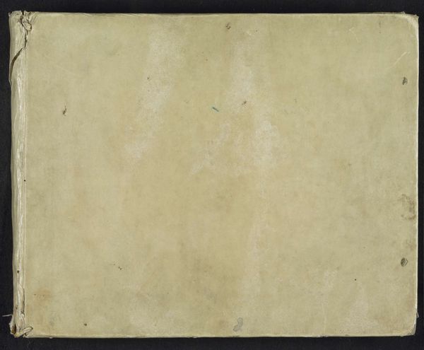 Editor: We are looking at "Schetsboek met 25 bladen," a sketchbook with 25 pages, dating back to 1908, by Carel Adolph Lion Cachet, held in the Rijksmuseum. The book is made of paper, and the artist used a pencil for drawing. The cover looks well-worn; I am intrigued to learn what's inside! How should we look at it? Curator: The sketchbook, itself, can be viewed as an artifact worthy of aesthetic examination. Note the material qualities: the tone of the aged paper, the textures suggested by its wear. How do these intrinsic features contribute to our understanding? Consider its composition: the cover’s surface is marked by subtle tonal shifts and various smudges, each potentially contributing to a richer visual experience. What semiotic systems may exist there? Editor: A semiotic system in the marks on the cover itself? Curator: Indeed! While the individual sketches inside might reveal the artist's specific intentions, the book's overall aesthetic form already embodies layers of meaning. We can approach this as a physical structure wherein each detail offers itself for decoding. What structures are presented that lead to greater meaning, perhaps? Editor: I see the value in regarding it as a whole artwork; its intrinsic characteristics have aesthetic weight, like color, composition, and the look and feel of its materials, regardless of any individual drawing on any page inside. Curator: Precisely. Approaching the object in this way allows one to consider the sketchbook's totality as a statement about art and process itself, yes? Editor: That shifts my perspective quite a bit. Thanks! I had been focusing on the fact that it was a container, but you are spot on. Now, it seems important to observe what’s ON the container too. Curator: Very good! We should consider art for the marks in its structure. Now consider also: how does understanding an artwork's construction shape and alter your viewpoint?