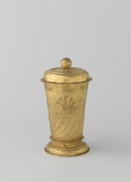 Editor: Here we have a 'Pair of Bases,' crafted from ceramic sometime between 1787 and 1805. They're currently held at the Metropolitan Museum of Art. I'm immediately drawn to the contrast between the cobalt blue and the white figures, and the bright gold trim that emphasizes the cylindrical form. How do you interpret the relationship between color, form and figures? Curator: Formally, this object operates on a system of carefully balanced contrasts and repetitions. Consider first the cylinder, a perfect geometric form disrupted by applied ornamentation. The crisp white sprigging, depicting neoclassical figures, jumps out against the flat matte of the ground. Editor: It almost feels like a rejection of painterly illusionism. Curator: Precisely. The scenes are not attempts to replicate nature but rather flattened designs arranged according to the cylinder's proportions. The gilded bronze mounts accentuate these forms even further; the linear borders create clear separations that draw the eye up the height of the piece. The piece emphasizes surface and controlled design. Editor: So you're saying the value lies in the object's internal coherence and formal qualities. Curator: Indeed. Color, line, and shape work together to create a visually appealing and conceptually unified object. What did you learn by this approach? Editor: This exercise encourages us to engage more thoughtfully with what we're looking at. Curator: Analyzing the art and design elements allows the observer to discover the intrinsic artistic qualities.