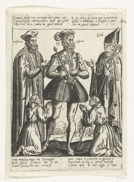 This print, created in 1631 by Willem de Passe, depicts Frederick V of Bohemia, his wife Elizabeth Stuart, and their children. De Passe was a master of engraving, a printmaking technique that involves incising an image onto a metal plate, inking the plate, and then pressing it onto paper. The fine lines and intricate details of the composition showcase the artist's skill. The material qualities of the print – its ink, paper, and the sharp lines created by the engraving process – contribute to its formal appearance. Engravings like this one were often commissioned by wealthy patrons to broadcast their power and status, essentially acting as an early form of mass media. Consider the labor involved: de Passe's expertise, the cost of materials, and the time invested in creating the printing plate. This artwork reflects the intersection of artistic skill, economic forces, and social ambitions in the 17th century. It prompts us to reflect on the relationship between art, craft, and the broader social context in which they are created.