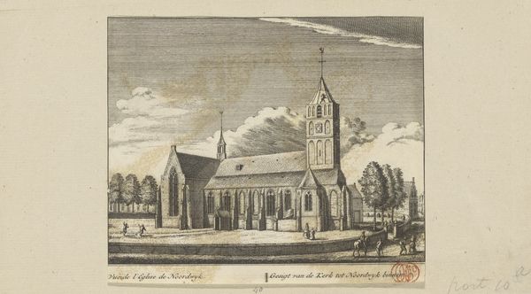 This is Jacob van Meurs' "View of the Church at Sloterdijk," made with etching. At first glance, the composition, dominated by the church's imposing structure, evokes a sense of stability, achieved by the precise lines of the architecture and the balanced distribution of figures in the foreground. However, the scene is more complex. The receding lines of sight introduce spatial depth and play with perspective. The church, depicted in meticulous detail, is contrasted by the lively informality of the figures scattered around, suggesting an integration of the sacred and the secular. Van Meurs uses line to map the social structure of the town, blending the architecture and the people who inhabit the space. By drawing our eye upwards, the church subtly imposes its structure on the community. Yet, in this tension between monumentality and everyday life, the church and town are bound together.
