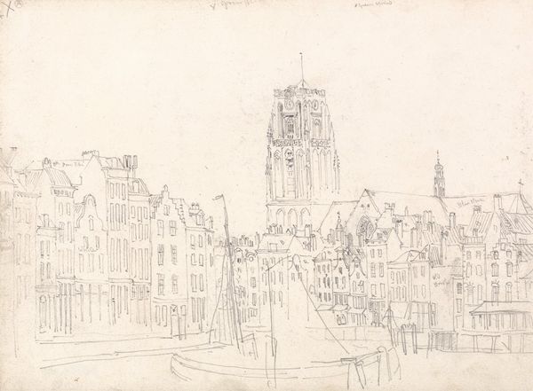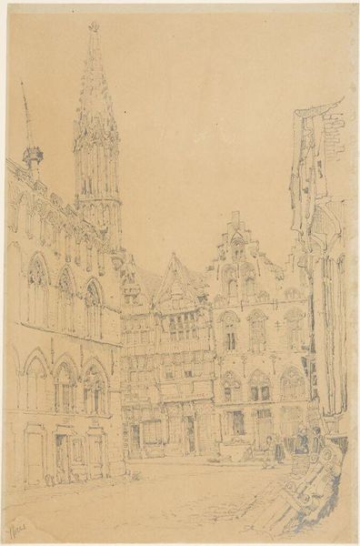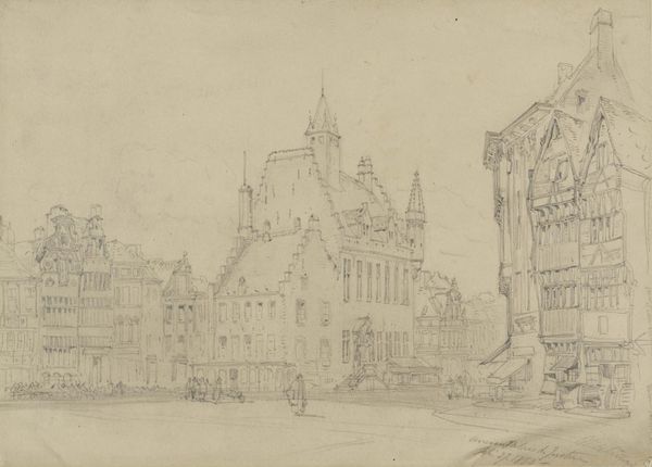 Editor: This sketch, "Unidentified Market Place, ? Lubeck or Leipzig" by William Callow, really captures a moment, doesn't it? It feels like a memory fading at the edges. What catches your eye when you look at it? Curator: Oh, absolutely. For me, it's the puzzle of the place itself. Is it Lubeck? Is it Leipzig? The sketch is so suggestive. And Callow’s touch is so light, like he’s just barely catching these buildings before they dissolve back into mist. It's like chasing a dream; are we sure this place exists at all? Does it matter? Editor: That's true; the ambiguity is part of its charm. So, it is more about the feeling than the actual location? Curator: Perhaps. Or, he is challenging us to create the memory. We are participating in the art. What I do know is the feeling is right. Editor: Definitely given me something to think about. Thanks!