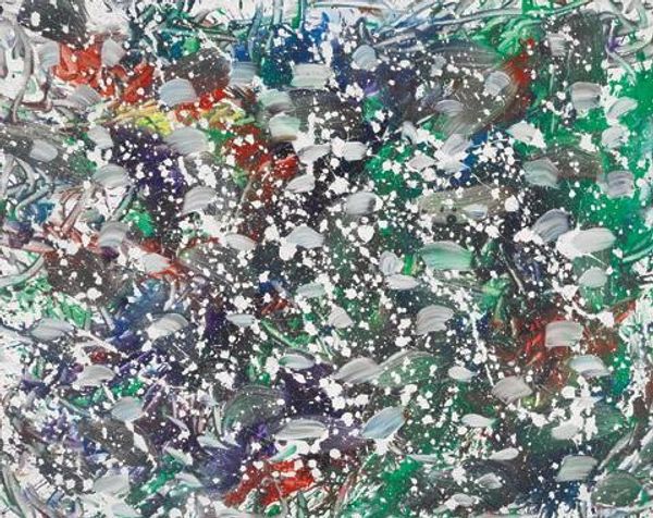 Lee Krasner made Shellflower with paint, and a whole lot of looking, layering, and reconsidering. The all-over composition gives you the sense that every inch was mulled over, each colour considered in relation to the last, and the next. Up close, you see how Krasner built up the surface. Short flicks and dabs of pigment, almost like she was constructing something, bit by bit. The blues and whites create a cool ground, with warm pinks, reds, and yellows sparking across the surface. See how she’s scratched and scrubbed at the paint, adding texture and revealing the layers underneath? It’s a process of constant adjustment, of building up and breaking down. Krasner’s paintings are like conversations – each mark a response to what came before. This feels like a continuation of work by Joan Mitchell, but with its own distinctive rhythm and voice. Art is like that, an ongoing back and forth!