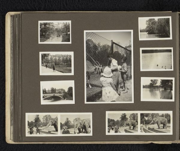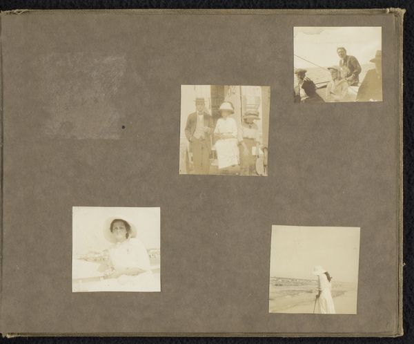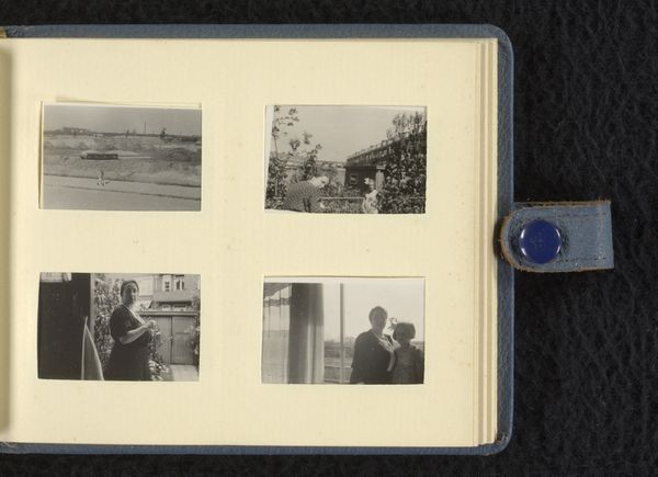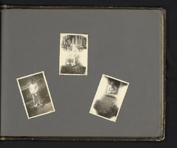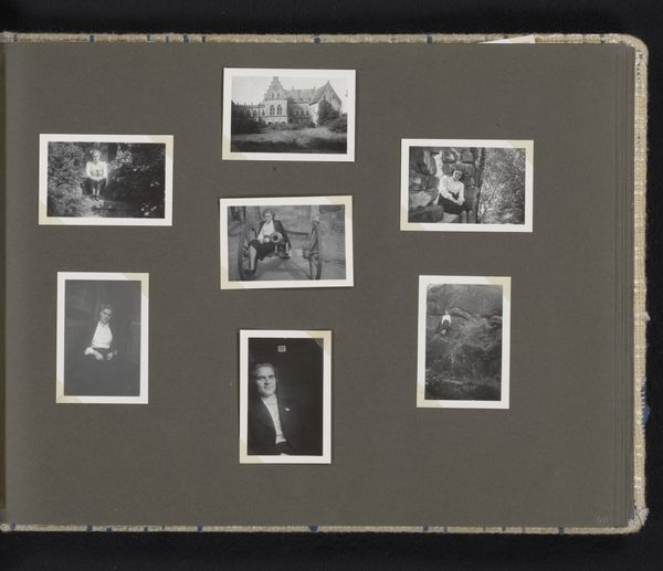 This album page, titled “Matrozen en huizen,” or "Sailors and Houses," is a collection of vernacular photographs assembled by an anonymous creator. The images offer a glimpse into the intimate lives of people, places, and memories. At first glance, it seems we have a window into everyday life, perhaps in a maritime community. Yet, let’s consider the cultural and societal role that sailors played. Traditionally, sailors represent masculinity, adventure, and the crossing of borders. But here, the sailor is domesticated, sitting at a table, possibly in his own home. The surrounding images of houses, typically coded as feminine spaces, add to this tension. Does this layout challenge conventional gender roles? Or does it reinforce the notion of sailors returning to safe harbor? Perhaps the album creator uses these images to explore themes of identity, belonging, and the negotiation between public and private life. The collection of images feels like a personal narrative, inviting us to consider the complexities of identity.
