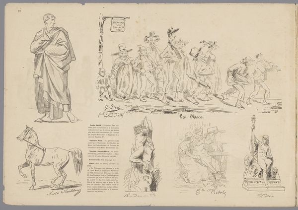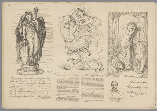 Firmin Gillot made this caricature of a man, a woman with children and a goat, a woman with children by a fire, and a man with a fez and a rifle using lithography. The image is highly suggestive of France’s colonialist ambitions during the mid-19th century. This was a time when French artists were expected to play a part in promoting colonialist ideologies, and to participate in France’s colonial expansion. The image does this by depicting the racialized other in comparison to the caricatures of men in suits that appear in the upper section of the lithograph. This image seems like an interesting case study into the way France's colonial project depended on constructing an image of the exotic other, as well as the way in which the institutions of art helped spread those images among the French public. For more information, I encourage you to consult contemporary publications and exhibition records.
