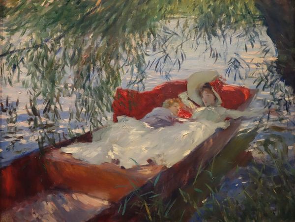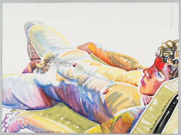 Editor: Here we have John Singer Sargent's "Zuleika," created in 1907 using watercolor. It's such an intimate portrayal, but the brushstrokes feel so loose and almost unfinished. How do you interpret this work? Curator: It's intriguing, isn't it? Beyond the Impressionistic style, which itself challenged academic norms, consider the sitter’s posture. She reclines, almost melting into the landscape, seemingly unbound by societal constraints on women’s comportment at the time. Do you think that's a fair assessment? Editor: Yes, that resonates. There's a passivity to it, perhaps. It could also indicate a newfound freedom for women? Curator: Precisely! It challenges the objectification inherent in the male gaze and empowers the sitter by representing a comfortable space. Sargent presents Zuleika as occupying space on her own terms, challenging the performative constraints women faced at that time. In short, she becomes her own artist! Editor: So, even the act of reclining could be read as a radical statement? Curator: Absolutely. When you view this in the context of the early 20th century and evolving concepts of gender and freedom, this artwork gains even greater power, does it not? Editor: Definitely. I was so focused on the style, I completely missed that. Thanks for reframing the perspective and opening my eyes! Curator: My pleasure. Art reveals its truest power through the intersections of brushstroke, history, and identity. It is truly revealing!