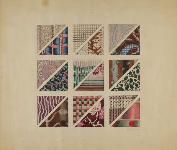 John Osbold created these watercolor studies of quilt swatches, with no known date, using watercolor on paper. The artist’s choice of watercolor invites us to reflect on the relationship between the original textile swatches and their representation. The painted image captures the tactile qualities of the fabric, but it is not the same. It highlights the inherent tension between the handmade and its artistic interpretation, and draws attention to the domestic craft traditions involved in quilt-making. Each swatch is meticulously rendered, with careful attention to color and pattern. The arrangement of the swatches on the paper emphasizes their individual characteristics. By isolating these quilt components, Osbold elevates them to the status of fine art, inviting us to consider the artistic merit of everyday objects. Osbold blurs the boundaries between art and craft, challenging conventional hierarchies. He encourages us to recognize the creativity and skill inherent in what might otherwise be seen as purely utilitarian items.
