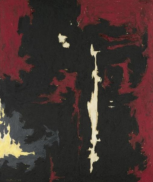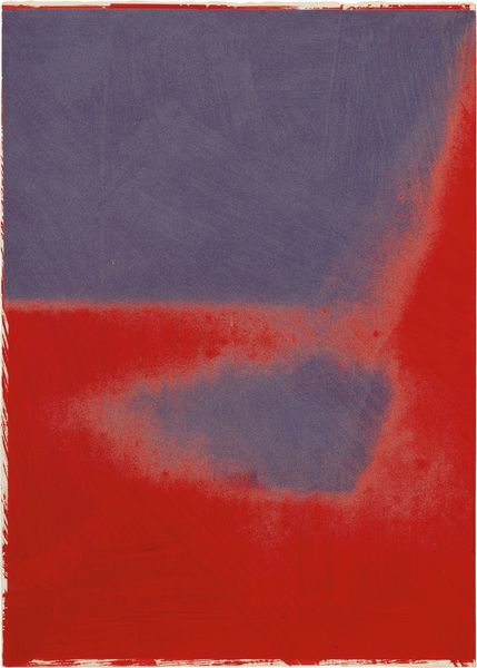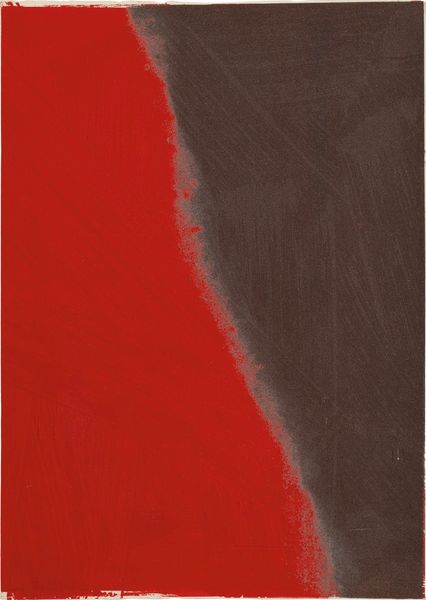 Curator: Andy Warhol’s *Shadows I #2* from 1979 is an interesting piece of mixed-media work, combining screenprint and acrylic paint. What's your initial take? Editor: Well, right off the bat, it's... haunting. That vast expanse of almost oppressive gray, and then, like a raw nerve, this slash of bright red struggling for attention. I'm both captivated and unnerved. Curator: The serial nature of Warhol’s art production is fascinating. We can see how mechanical reproduction influences the perceived "aura" of the work, right? Editor: Absolutely, the factory-like aspect is visible. I almost want to touch it, to see how the surface shifts from that dense, grey matter to the aggressive, visceral red. Does it feel as mass-produced in person, as the colours bleed into one another in the light and shadow? Curator: Indeed. The silkscreen element connects it to Warhol's earlier pop works, reflecting his interest in mechanization, mass culture and appropriation but this particular work sees him veer from explicit pop imagery to near abstraction. Think about it - he has taken the format from commercial process and elevated to high art, almost daring the viewer to see the shadow as a commodity as much as a motif. Editor: He challenges us, yes? Like, "How much are YOU projecting? Is there really shadow or just your dread?" And that minimal pop art background throws a new perspective to our vision, an existential dread coated in candy paint, I suppose? Curator: The physicality cannot be dismissed. From what I understand about the making, Warhol was invested in the production: screen-printing, then assistants applying acrylic. It's collaborative but ultimately still driven by his aesthetic decisions, his choices about color, composition and his overall questioning about the means of production that makes it undeniably post-modern. Editor: Postmodern angst on canvas. It's like a whispered secret, one that Warhol might have chuckled over. Overall it gives a lingering feeling of… incompleteness, of a puzzle without all its pieces. Curator: Perhaps the puzzle, like art itself, is perpetually unfinished. It speaks to our constant need for new experiences with materials, methods and the changing means of their construction. Editor: Absolutely and with the shadows looming we could look deeper into his statement about commercialization. It is provocative!