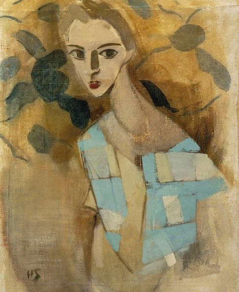 Curator: Staring back at us, we have Helene Schjerfbeck's “Göta,” an oil painting completed in 1933. What’s your initial take? Editor: A quiet melancholy. Those downward-glancing eyes and muted tones… it feels like a secret is being kept, or a profound weariness carried. There's a definite expressive charge. Curator: Schjerfbeck distilled portraiture to its essence, really, paring away detail for emotional impact. The sitter's face is almost mask-like, the planes simplified, the colour very reserved. It really reflects Schjerfbeck’s Modernist ideas, looking toward abstraction. Editor: Indeed. The background seems unfinished, deliberately raw. And that stark contrast between the black hair and the pale skin heightens the intensity. What do we know about Göta herself? Was she someone the artist knew? Curator: Actually, there is little documented about the sitter. Many of Schjerfbeck's later portraits become less about the subject and more about her process, her exploration of form. It raises a lot of questions around identity and representation. Did Schjerfbeck seek to represent Göta as a person, or simply utilize the body and face as an armature for expressing deeper issues within painting itself? Editor: So the identity of "Göta" almost becomes secondary. The power resides in the way Schjerfbeck abstracts the figure, transforming a personal depiction into something universal, about human vulnerability and introspection. Curator: Precisely. And this was painted during a time when portraiture was experiencing a real identity crisis in the face of photography. The question became, what could paint do that photography couldn't? Schjerfbeck, along with other modernist painters, were pushing the boundaries. Editor: And pushing us, the viewers, to consider the act of seeing, the nature of personhood...to think about mortality. Well, "Göta" has certainly given me pause today. Curator: As it has me. It is a painting that truly lingers.