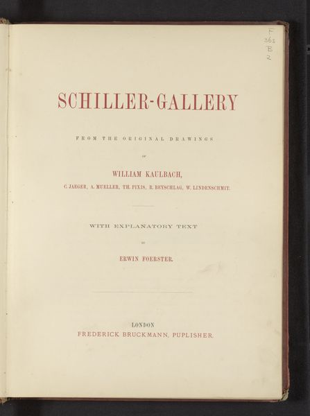 Editor: This is "Goethe-Gallerie," a print on paper from around 1885, made anonymously. The typography is so straightforward; almost clinical. It's a far cry from elaborate design. How do you see this work functioning? Curator: What's interesting to me is its "cabinet-ausgabe" designation—implying mass production. So, rather than focusing solely on the individual artistic genius of a named artist, it urges us to consider the means of production and distribution. Who was consuming these prints, and why? Were they striving for education, cultural capital, or something else entirely? Editor: That's a good point. So, even with the title "Goethe-Gallerie," this print speaks more to a production process than a focus on Goethe? Curator: Precisely! Consider the "Verlagsanstalt für Kunst und Wissenschaft"—a publishing house for art and science. The materials are not precious. The artistic statement may not be sophisticated. The point of focus lies in the circulation, accessibility, and standardization of culture. Who decided that this specific collection deserved such accessible production and distribution? The social implications become apparent when we focus on the materials and modes of distribution, revealing insights into late 19th-century society. Editor: I see. It shifts the focus from the aesthetic to the mechanism behind the art reaching the masses. It makes you consider art as commodity, too. Curator: Exactly! Focusing on material processes pushes beyond the artist’s supposed intention. It asks: who controls the means of dissemination and thus, constructs a canon? Editor: Thinking about art this way gives it a completely different dimension. It's about deconstructing how we got to see things a certain way in the first place. Thanks! Curator: Indeed! The value is not in the finished product itself, but within the socio-economic networks that enable it.