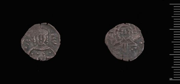 Editor: This is a Half-Stavraton of Manuel II, a coin from Harvard Art Museums. It looks worn, like it has a history. What can you tell me about it? Curator: Considering this coin, it is crucial to explore the political economy of the Byzantine Empire. What materials were used? How were they sourced and distributed? Who was involved in its production, from the miners to the engravers and minters? These questions reveal the complex network of labor and resources behind even a small artifact like this. Editor: That’s fascinating. So, the coin is more than just currency; it's a record of its time? Curator: Precisely! Each coin represents a tangible connection to the social and material conditions of its era. Thinking about the coin’s circulation also leads us to consider the flow of power and trade within and beyond the Byzantine borders. Editor: I never thought about it that way. Thank you!