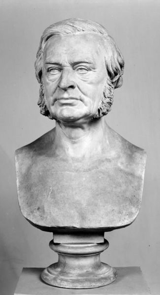 Curator: Let's turn our attention to this marble bust, a portrait of the historian Professor C.F. Allen created in 1860 by H.W. Bissen, currently residing here at the SMK. What's your initial feeling about this one? Editor: I'm struck by its cool austerity. Marble has this inherent aloofness, and coupled with the professor’s rather stern expression, it feels almost…clinical. I imagine the hand of the artist toiling away at such hard material to realize such refined form. Curator: Yes, it's very Neoclassical, isn't it? But then Bissen was deeply influenced by Thorvaldsen, a master of that very style. I wonder about the relationship. What was the quarry like? Did Bissen participate himself in the procurement? Marble holds history too. Editor: Indeed, one imagines the journey of this marble, ripped from the earth, shipped across the sea, the sheer physical labor involved in revealing this likeness from such a dense block. It contrasts sharply with the refined intellectual the sculpture represents. Curator: Exactly! And Allen, of course, a towering figure in Danish history. He shaped our understanding of the past through his writings. I look at the piece and get such a sense of serious intent – the weight of scholarship etched into stone. The furrow in his brow is intense. Almost… a challenge. Editor: It's the kind of face you expect to see judging a historical debate! Though, I can't help but wonder, too, about the cost of such portraiture. Who had access to such commissions? Who was excluded? What voices are forever lost from the historical record? It provokes thoughts beyond aesthetics. Curator: Excellent points. The context is paramount. Looking again at the sculpture's lines, the strong jawline against the curls framing the face... There’s an inherent drama playing with marble stillness that feels very Romantic, if you agree. Editor: I agree, this dance between realism and the inherent coldness of marble reminds us how much human labor has been and continues to be invested in the arts, a tradition we tend to forget. Thank you.