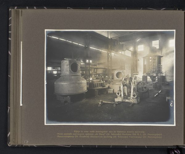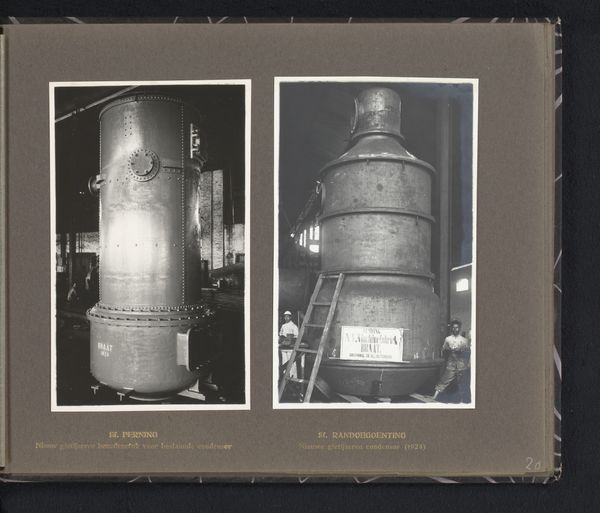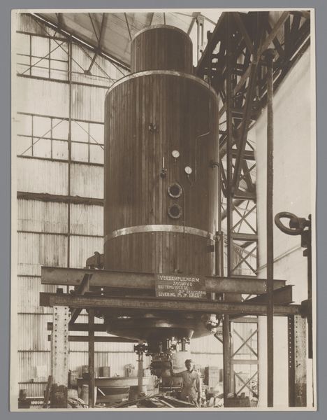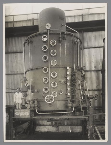 Curator: What grabs me here is that this seemingly straightforward image, "Boiler for the Tangoelangin Sugar Factory, Java, 1916," transcends mere documentation. It’s a photograph, but more profoundly, it's about labor and industry during the colonial era. Editor: It's very imposing. The boiler dominates the frame, but it feels almost… clinical, in a way? It makes me think about how these machines were part of larger industrial processes, almost divorced from human interaction. How would you interpret that in terms of materiality? Curator: I'm fascinated by the evidence of production it reveals. Think about the construction: each rivet, pipe, and valve tells a story of fabrication and assembly. And this wasn’t happening in a vacuum. This boiler symbolizes the intense industrial extraction occurring in Java at the time, feeding global markets. We need to consider who built this machine and the conditions they worked under. Editor: So you're seeing this photo as a trace, evidence of specific labor practices rather than just an image of a machine. It seems like a pretty straightforward image… do you find a more hidden class message as well? Curator: Absolutely. The photograph hides a multitude of actions of the human workforce, the exploitation inherent in the colonial system, and the export of resources. This wasn't about celebrating local artistry, but about extracting value and shifting wealth elsewhere. Editor: Wow, I didn't think I could look at a boiler in such an interesting and complex way. Seeing the factory, I wasn't thinking of human extraction... Thank you for helping me get the broader context of the factory process. Curator: My pleasure. It shows how something as mundane as industrial machinery becomes powerful when examined through a material lens, illuminating the historical context of production and exploitation.