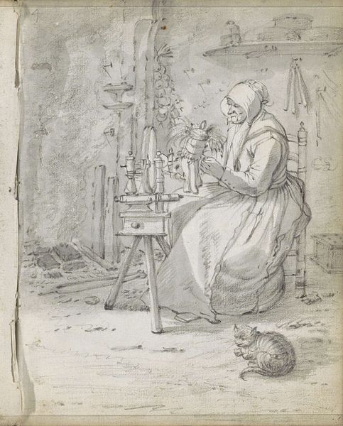 Johann Koler created "Ketraja," an undated watercolor painting that offers us a glimpse into 19th-century Estonian life. This intimate portrayal depicts a young woman diligently working at a spinning wheel. Her traditional attire, complete with a red headscarf, speaks to her cultural identity and place within a rural community. Notice how Koler captures a quiet, introspective moment. The woman's gaze is cast downwards, focused on her task, hinting at the labor and skills that define her daily life. Koler’s choice to depict a woman engaged in domestic work touches on broader themes of gender and labor. It invites us to consider the roles and expectations placed upon women in 19th-century Estonia. Does this image honor labor, or does it re-inscribe stereotypes? "Ketraja" becomes a powerful reflection on identity, tradition, and the lived experiences of women.