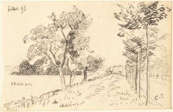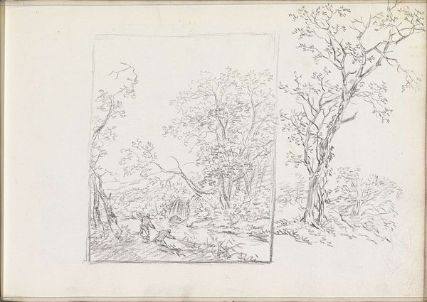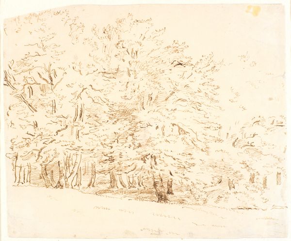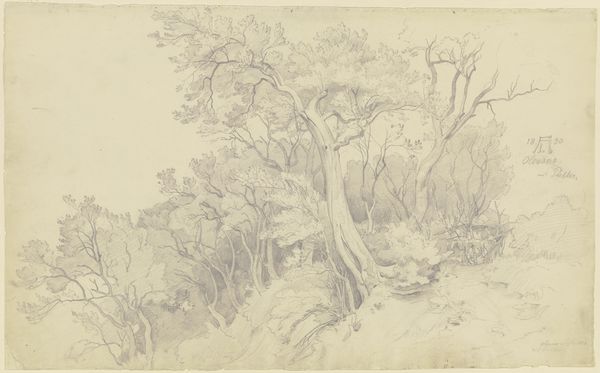 Dankvart Dreyer created this forest interior with graphite on paper. Notice how the composition is built up with a series of delicate, almost tentative lines. Dreyer uses line not just to define form but to create a sense of depth and atmosphere. The density of lines varies across the composition, creating a play of light and shadow that draws the eye through the scene. We see through a semiotic lens, the forest isn't just a collection of trees, but a structured system of signs. The trees, the play of light, the open space in the foreground; these elements work together to create a coherent visual language. Consider the overall structure: the drawing destabilizes the traditional landscape by focusing on the interior, creating a space that feels both intimate and expansive. This shift challenges our expectations, inviting us to reconsider our relationship with nature. The artwork, with its structural depth, evokes a profound engagement with space and perception.