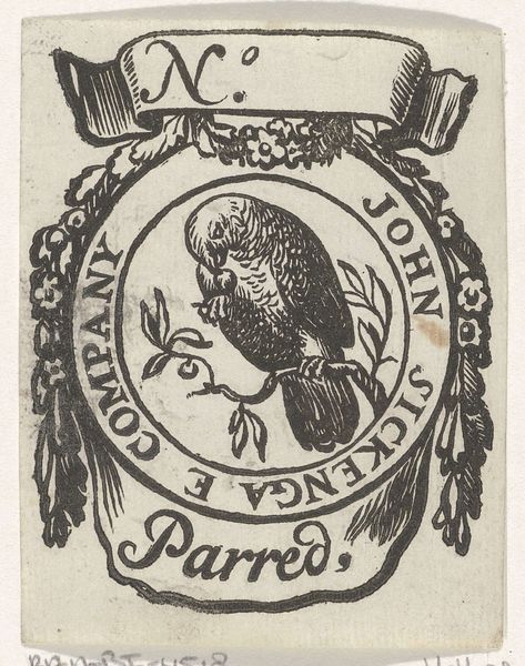 Editor: So, this is a 17th-century engraving, “Vignet van Elias Geschier te Haarlem,” made by an anonymous artist using ink. The sharp contrast and detail feel almost like a heraldic emblem. What catches your eye when you look at it? Curator: It sings of secrets, doesn't it? Look at that peacock – it's not just preening for the camera; it’s flaunting the very feathers that other birds can only dream of. Now, who was Elias Geschier, and why did someone feel the urge to immortalize him with such flamboyant imagery? Is he a prince of merchants or a peacock amongst men? Editor: A peacock amongst men, I love that. Maybe the peacock represents his character? Like a symbol of pride? Curator: Precisely! Or perhaps a reflection of the city of Haarlem itself? The Dutch Golden Age was a period bursting with pride, trade, and new discoveries. It's easy to imagine this vignette gracing a title page of an important document or map. Consider how this era embraced allegory and symbolism; how might the crown above ‘Haarlem’ play into that symbolism, in addition to the peacock, and what riches do those crossed quills represent? Editor: That makes so much sense. It’s like a visual representation of Haarlem’s identity, wrapped up in this one image! And you're right, the quills... Maybe they hint at the importance of scholarship and record-keeping? Curator: Ah, see! You’re unraveling its whispers already. This isn’t just ink on paper; it's a little time capsule of cultural aspirations. Imagine flipping through such a volume back then, what tales it promises! What possibilities. Editor: It's incredible how much history and meaning can be packed into a tiny image. Now, when I look at it, I see it a bit differently... like I can hear its story, too. Curator: That, my dear, is when art truly begins to speak.