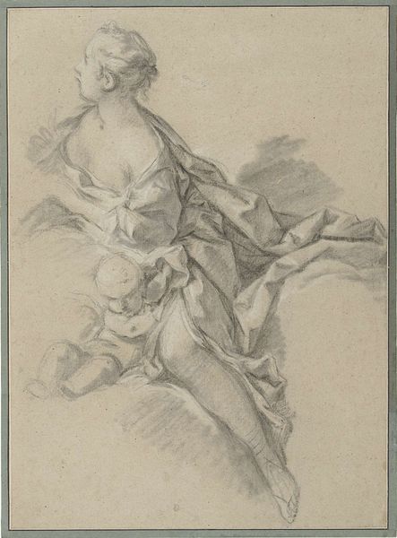 Curator: This drawing, "Allegorical Figure," is by Pietro Antonio Novelli. Look at the use of line! Editor: It feels very immediate, sketched almost as a passing thought. The figure, though, seems lost in reflection. Curator: Novelli was working in a time of massive social change. The figure is presented without luxury, perhaps suggesting the impact on the working class. Editor: The starkness of the ink on paper emphasizes form and light; the artist’s hand evident in every stroke. It's a directness that pulls you in. Curator: Novelli's artistic labor mirrors the labor he may have been commenting on, making the work itself a product of its environment. Editor: The contrast between the finished portions and the open, gestural lines creates a powerful visual tension. There is a sense of incompleteness that speaks volumes. Curator: Absolutely. It allows us to consider how social upheaval shapes the very material of art. Editor: Yes, the material speaks to the symbolic.