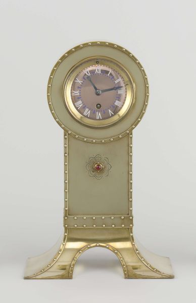 Editor: Here we have Simon Willard's "Clock," crafted between 1825 and 1830, incorporating wood, glass, brass and metal. It reminds me a little of a monument. What strikes you about it? Curator: I see this not just as a time-telling device but as a cultural artifact embedded in the socio-political currents of its time. The clock's Neoclassical design, while seemingly innocuous, speaks volumes about the aspirational values of the emerging American elite in the early 19th century. How does this pursuit of European aesthetics intersect with the young nation's identity formation and its relationship to power? Editor: That's a really interesting point. I hadn't considered how the adoption of Neoclassical style was connected to the social values of that time. Is there also a symbolic value in containing time? Curator: Precisely. Timepieces during this era became potent signifiers of control, progress, and the rationalization of daily life. The elite, who could afford such luxuries, effectively declared their dominion over time, differentiating themselves from the laboring classes whose lives were governed by the rhythms of nature. It represents the onset of a cultural shift towards measuring labor that directly served the powerful. What is striking here is the bell jar which serves both to highlight, frame, and preserve time itself. This preservation has interesting parallels with contemporaneous political and social perspectives of control and stasis. It is also impossible to ignore that we’re viewing this in the Met in 2024. What is highlighted, preserved, and kept safe in our museums and what isn’t? Editor: Wow, I will definitely look at the clock differently now. I hadn't considered the object as embedded in larger cultural shifts. Thanks so much. Curator: It’s about situating these artifacts within a matrix of power dynamics and historical narratives. The decorative arts are rife with these loaded references if you have the tools to begin that journey.