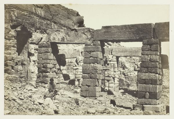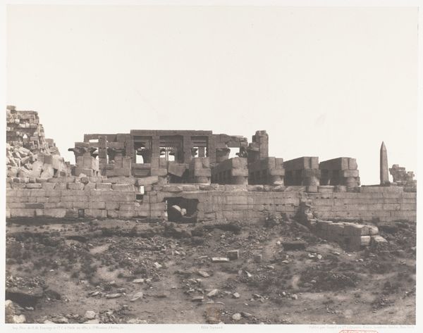 Félix Teynard captured this photograph, "Ile de Fîleh", using the calotype process around 1851-1852, during a time when European interest in Egypt was intensifying. Teynard, a French engineer and photographer, documented Egypt's ancient monuments during a French survey, not long after Egypt had opened up more broadly to Westerners. Look closely at the remnants of the colonnade; it powerfully evokes a sense of history and cultural exchange, but also loss. The photograph becomes an artifact of a colonial gaze, framing Egypt's past through a European lens, especially during a time of colonial expansion and power dynamics. Consider how the image highlights the ruins, emphasizing the passage of time and the perceived decline of a once-great civilization. It prompts reflection on whose stories are told and how they are framed within the larger narrative of history.