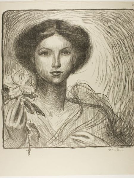 Editor: Here we have Rodolphe Bresdin's "Woman with Elaborate Hat." It's quite small, just a few centimeters, and rendered with incredible detail. What stands out to me is the clear emphasis on the hat itself, the signifier of status, even luxury. What do you make of it? Curator: Consider the materials – the paper itself, likely mass-produced, versus the labor-intensive etching technique. Bresdin, often struggling financially, is depicting an emblem of bourgeois consumption. Is he celebrating it, or critiquing the social divide inherent in such displays of wealth? The means of production become part of the narrative. Editor: That gives me a lot to consider! Curator: Indeed. The piece forces us to question the relationship between artistry, materiality, and social commentary.