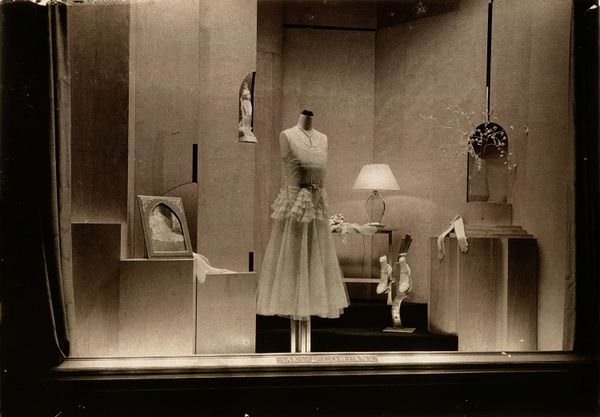 Curator: Here we have Judith Shea’s “Queen/King,” a gelatin silver print from 1976. It’s quite a striking image, isn’t it? Editor: Yes, my first thought is of how unsettling this picture feels. It's monochromatic and ghostly, almost like a recovered artifact. Are those… kids? Curator: Indeed. Shea photographed children positioned in front of clothing patterns—robes, to be exact, each suspended like vestments. Note the deliberate mirroring. Editor: The material quality—those slightly rumpled patterns and their suggestive folds—speaks volumes about both potential and restriction. It's fabric, so easily shaped, yet pre-determined by pattern. The labour it takes to even imagine wearing the robes. Curator: Exactly. Shea's work often played with the dynamics of power and representation. “Queen/King” uses childhood and garment archetypes to subtly dissect societal roles. She created this work when there was active discussion in second wave feminism about the need to liberate women from the societal 'clothing' of what they should be. Editor: Those paper crowns on the children too… What kind of material are they made of? They appear heavy on top of their heads, maybe implying forced nobility. The image suggests a kind of staged theatre, or is the whole photo maybe itself lifted from archives? It fits somewhere between photography and costume design. Curator: It does borrow elements from both! Conceptual art in that time used archives often as part of an appropriated process. The staging draws attention to how we learn to perform within institutional frameworks, and how materials construct the narratives around us. Editor: I see that now – it is less a family photograph and more a document interrogating social structure. The garments could almost be prototypes on display… it even creates the scene like it is within the backdrop of a gallery. Curator: Yes, exactly! This photograph, its grainy texture and layered composition, is a thoughtful examination of assigned identities. We see it as just a ghost of an image but for all it hides, it tells us so much about society at the time. Editor: It leaves you pondering the limitations placed upon them, quite literally hanging above their heads. A provocative capture indeed.