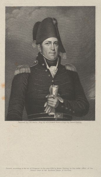 Samuel Lovett Waldo painted this portrait of General Andrew Jackson. We are confronted with a composition that is vertically oriented, in which the subject is centrally positioned, lending the work a sense of balance and formal dignity. The colour palette is restrained, dominated by earth tones, lending a sombre mood appropriate for a military portrait. Waldo’s use of light and shadow is particularly strategic. Notice how the light gently illuminates Jackson’s face, casting shadows that define his facial structure. The formal qualities of the portrait, such as the stark, dark military attire, can be interpreted as a reflection of the subject's persona and the artist's perception of power and authority. The portrait isn’t merely a likeness; it functions as a semiotic system, where elements like the subject's gaze and the sombre palette work together to convey specific meanings and cultural values.