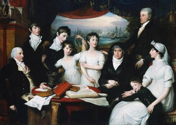 Charles Willson Peale likely painted this portrait of Robert Goldsborough and his family with oil on canvas. Peale's technique involved carefully layering paint to build up the forms and textures of his subjects, evident in the detailed rendering of fabrics, skin tones, and facial features. The canvas serves as the foundation for the artist's meticulous work, its weave providing a subtle texture beneath the smooth, glossy surface of the oil paint. Consider too the social context of portraiture at the time. The Goldsborough family likely commissioned this work as a display of their status and wealth. The materials—the canvas, the pigments, the varnish—were all commodities, and the labor involved in their production and application speaks to a wider economic system. Peale himself was a skilled artisan, and his ability to capture the likeness and character of his subjects was a valuable commodity in a society increasingly aware of its own image. In the end, this painting is more than just a representation of a family; it's a product of its time, reflecting the values, materials, and social structures of early America.