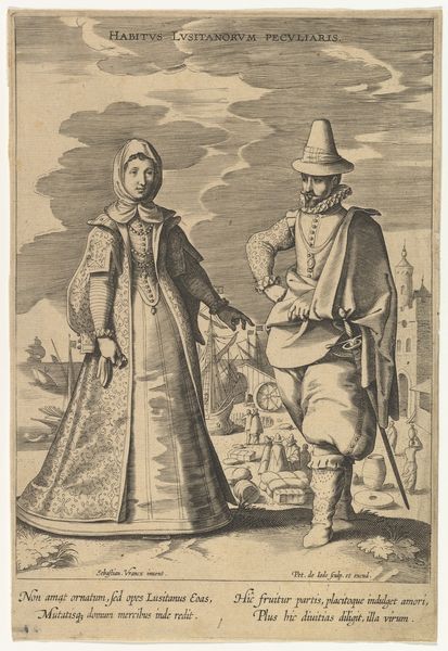 Pieter de Jode’s engraving, "Hispani et Hispanae in Vestitu Cultus," presents Spanish fashion, capturing more than mere attire. The woman’s veil, cascading down her body, speaks volumes. Historically, veils symbolized modesty and piety, yet their use varied across cultures. In ancient Rome, the "flammeum," a bright orange veil, cloaked brides, symbolizing a new life. But here, in 16th-century Spain, the veil hints at something more, a shroud of mystery. This motif resonates through art history. Consider the veiled figures of antiquity, like veiled Vestal Virgins, or even Salome, who dances veiled before Herod, promising danger and seduction. Across time, the veil’s meaning shifts, yet it retains a powerful psychological resonance, hinting at hidden depths, concealed desires, and the complex interplay between concealment and revelation. The power of an image lies not just in what is seen but in the echoes it stirs within us.