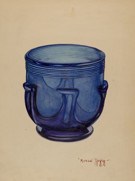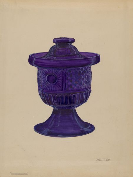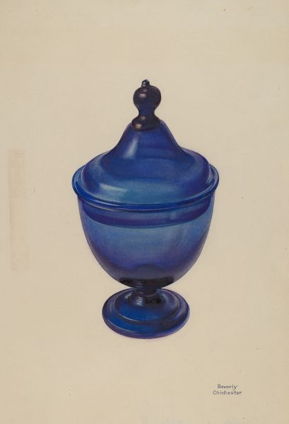 A. Zaidenberg made this watercolour and graphite drawing of a sugar bowl, with a cover, at some point between 1855 and 1995. Look at how the blue paint is laid down so carefully to give the impression of a reflective surface. It's a pretty controlled process, not splashy or accidental, but very deliberate. It’s interesting to look closely at the blue. There's something about that strong color combined with the almost obsessive detail which makes it feel both familiar and slightly strange. Notice the way the paint seems to glow in some areas and sits darker in others, almost as if the sugar bowl itself is casting its own light. Focus on the small, diamond-shaped patterns on the bowl's body: each one is rendered with individual attention, creating a kind of textured surface that you want to reach out and touch, a play of light and shadow. This piece reminds me of the work of Charles Burchfield, who also saw the spiritual dimension to everyday objects. The beauty of art is that it allows us to see these objects in new ways.