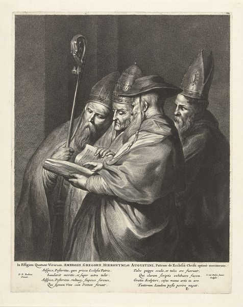 Editor: This small etching, titled "I'm a complete simpleton and I can ring a little bell" by an anonymous artist, presents a cacophony of grotesque faces. The intensity is striking! What do you see in this piece? Curator: Oh, it's a carnival of satire, isn't it? The exaggerated features, the musical score... it feels like a visual joke about someone trying desperately to belong, maybe even mocking artistic pretension itself. What do you make of the text? Editor: It adds to the humor, like a self-deprecating punchline! So, the artist is possibly critiquing the idea of artistic skill or social climbing? Curator: Precisely! It's a humbling little mirror reflecting our own absurdities. Makes you wonder what kind of bell they're really talking about, doesn't it? Editor: Definitely gives me something to think about...Thanks! Curator: My pleasure! Now go forth and ring your own little bell!