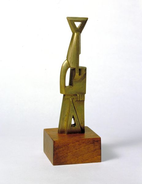 Editor: So here we have Étienne Hajdu's "Le Bourgeon" from 1971, a bronze sculpture. It definitely gives off a surreal, biomorphic vibe, kind of like a futuristic plant. What's your interpretation of this work? Curator: Considering the time it was made, it’s interesting to see such organic forms being rendered in bronze. How do you think the post-war cultural climate may have influenced the choice of materials? Editor: That's a good question. Maybe it's about finding new ways to work with traditional materials to express new ideas about nature, or perhaps reflect anxieties about industrial progress. Curator: Precisely. After periods of conflict, artists often reassess their relationship to nature and technology. I see a dialogue here, maybe even a tension. Look at how the sleek surface of the bronze contrasts with the suggestive, soft forms. Does it represent a harmonious melding of technology and nature, or a more complex negotiation? Editor: I think it’s that negotiation that grabs me the most. The polished bronze suggests progress, but the almost vulnerable organic shapes hint at the fragility of it all. Like nature is adapting, evolving…maybe resisting? Curator: And think about the socio-political forces shaping the art world. Museums and galleries, during this period, actively promoted abstract and non-representational art, partly to champion freedom of expression against ideological constraints. So how does this fit into that narrative? Editor: It’s a statement in itself! That sculpture becomes an act of defiance. By embracing abstraction, Hajdu is asserting a space for free thinking and re-examining societal values post-war. Curator: Indeed. By questioning its material, we not only deepen our appreciation of the piece but also become attuned to broader societal tensions reflected within the artwork. Editor: I agree! Analyzing it this way has really opened my eyes to the complex conversation this sculpture is having with its context. Curator: And that’s exactly what makes art history so enriching. Always question, always contextualize.