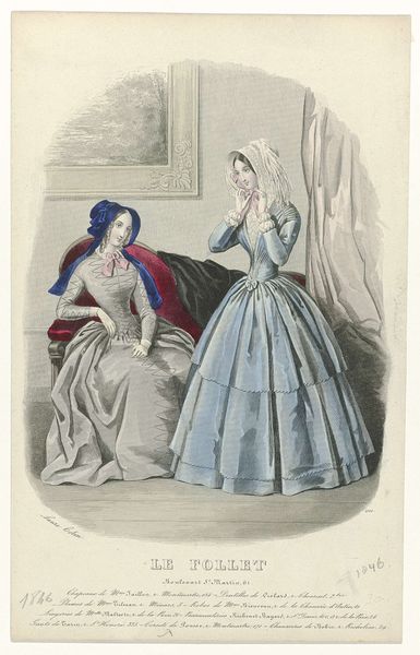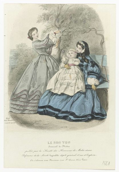 This fashion plate, published in France in 1860, captures the elegance of the Second Empire, dominated by elaborate dresses and bonnets. The bonnet, prominently featured here, is not merely a head covering; it is a potent symbol of feminine identity, signaling modesty and virtue. Consider its evolution: from simple protective headgear in antiquity to ornate displays of status in the Renaissance. We see echoes of this transformation in earlier depictions of female saints, their heads covered as a sign of piety, yet adorned with precious jewels. The bonnet in this image, while secular, still carries remnants of this sacred history. The desire to adorn and conceal—to project both status and virtue—speaks to the complex psychological undercurrents of the era. The bonnet, like the veil, becomes a stage upon which desires and inhibitions play out, engaging us in a timeless drama of display and concealment.