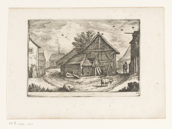 Curator: Here we have "Apostel Filippus doopt de kamerling," created around 1620 by Matthäus Merian I. It’s an etching. Editor: There’s a charming stillness to it, a calm emanating from the central figures despite the busyness of the rest of the composition. It reminds me of pastoral scenes, with that home in the distance. Curator: The composition is certainly deliberate, using the landscape to reinforce the spiritual moment of baptism. Notice how the figures are positioned at the meeting point of the diagonal road. Editor: True, the setting and the baptism's context are crucial here. The story illustrates the early Church’s expansion, specifically including someone of high status, defying social expectations. I imagine Merian made the scenery look familiar to audiences at the time, drawing viewers in. Curator: Absolutely, the scene feels decidedly northern European, rather than Middle Eastern. But let’s consider the line work; it varies in weight, creating depth and directing our eye. It suggests the texture of garments and the natural forms. I'm intrigued by the contrast between the detail of the foreground figures and the more suggestive strokes defining the distant buildings. Editor: That domestication perhaps diminishes some of the revolutionary aspect inherent in the tale of Philip and the Ethiopian official’s encounter and equality. Do you think there could be political intention behind his compositional choices, perhaps reflecting shifting social views through his lens? Curator: That's plausible; art often serves ideological functions, whether overt or subtle. Focusing on Merian’s process though, I believe the etching, as a medium, enables a diffusion of ideas beyond traditional patronage circles, bringing Biblical stories into the homes of a broader audience. The crosshatching gives form and volume in ways engraving simply could not. Editor: And its dissemination speaks volumes regarding its cultural role at the time, not only as a beautiful object but as a didactic device, reflecting contemporary understandings of morality and belonging in religious life. A very worthwhile thing to observe here today. Curator: Precisely, a testament to both its aesthetic appeal and the sociopolitical values it embodies.