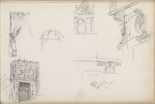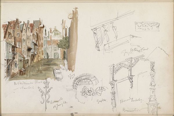 Isaac Gosschalk created this pencil drawing of stepped gables in Utrecht en Bommel. This kind of preparatory sketch is so interesting because of the way it reveals the artist's thought processes. It's a very direct record of his engagement with the architecture. The sharp lines, careful details of the gable's ornamentation, and the annotations around the drawing show a desire for precision and a close study of form. We see the time and skill involved in accurately capturing the architectural details, emphasizing the labor invested in both the drawing and the original construction of the gables themselves. Drawings like this challenge the traditional divide between art and craft. Gosschalk’s work makes us consider the relationship between the skilled labor of architectural design, and the artistic interpretation of the built environment. Ultimately, this piece invites us to appreciate the craftsmanship embedded in everyday structures.