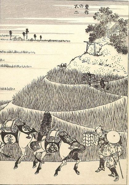 Editor: Here we have Hokusai’s "Fuji Under Clear Skies," a page from his "One Hundred Views of Mount Fuji." It’s so serene, almost meditative. What significance do you see in the depiction of Mount Fuji in this work? Curator: Mount Fuji is more than just a mountain; it's a cultural touchstone, a symbol deeply woven into the fabric of Japanese identity. Notice how Hokusai renders the mountain not just as a physical form, but as an enduring presence, suggesting resilience. Editor: So it's about more than just the view itself? Curator: Precisely! It invites reflection on permanence. This piece also encapsulates a sense of national pride. Does that resonate with you? Editor: Absolutely! It's fascinating how a single image can hold so much symbolic weight. Curator: Indeed. Visual symbols often carry a history, evolving and accumulating meaning over time.
