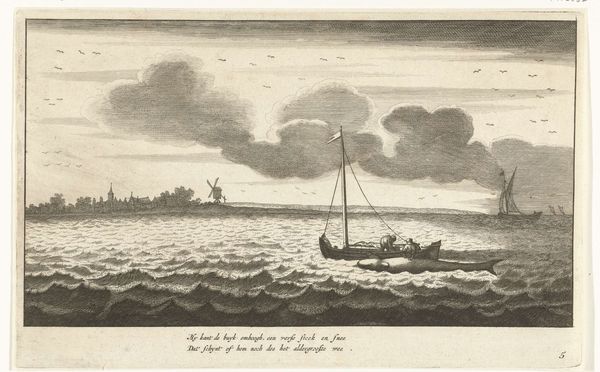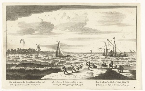This is Arend Fokke Willemsz.’s etching from 1779, depicting the ship Woestduyn amidst a storm. Notice how the composition is dominated by contrasting textures: the turbulent, chaotic waves in the foreground and the ominous, swirling clouds above. Willemsz. uses a network of fine lines to create texture and depth. The diagonal lines of the waves lead our eye toward the struggling ship, emphasizing its vulnerability against the immensity of nature. The destruction of the vessel may be interpreted within a broader historical context. The late 18th century was a time of exploration, but also of great risk. Images of shipwrecks captured a sense of the sublime, combining awe and terror. This print not only documents a maritime event but also invites us to reflect on the fragility of human endeavors when confronted by nature's overwhelming power. Note that through his skilled handling of line and form, Willemsz. creates a scene that is as dramatic as it is contemplative.